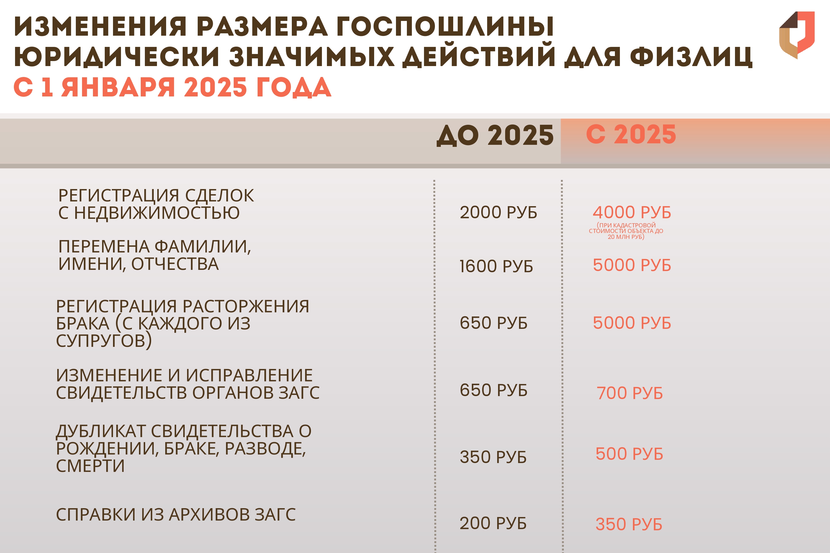 Без изменений остаётся госпошлина за такие юридически значимые действия, как:
