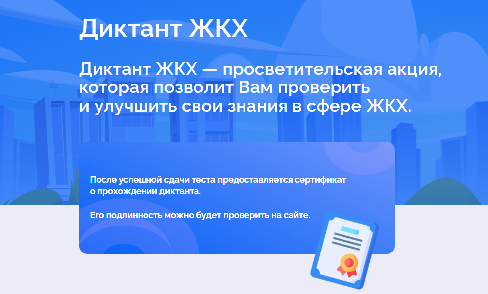 «Единая Россия» при поддержке Минстроя РФ проводит всероссийское мероприятие «Диктант ЖКХ». Акция поможет повысить правовую грамотность в вопросах, связанных с предоставлением жилищных и коммунальных услуг. Принять участие в тестировании могут как жители многоквартирных домов, так и представители сферы ЖКХ.