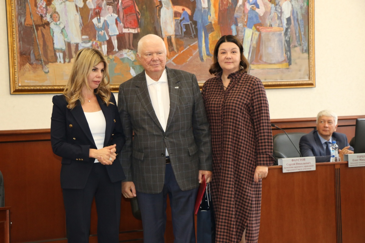 Сегодня на очередной 40 сессии Липецкого горсовета поздравления от спикера Евгении Фрай, мэра Евгении Уваркиной и всего депутатского корпуса принимал председатель Общественной палаты города,