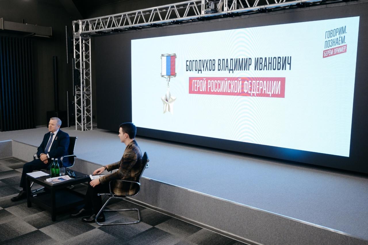 В Центре управления регионом прошла встреча молодёжи с Героем Российской Федерации, полковником запаса, заслуженным военным штурманом Богодуховым Владимиром Ивановичем.