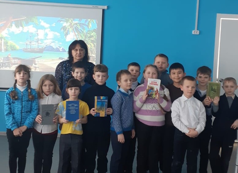 Ребята познакомились с биографией автора, узнали, что Р.Л. Стивенсон в игре с приемным сыном нарисовал карту незнакомого острова, и даже не подозревал, что с этой минуты приступил к созданию романа, которому суждено было войти в мировую литературу. Так как автор с детства проживал в прибрежном городке, то слышал от моряков, смотрителей маяков, бакенщиков множество приключенческих историй, многие сюжеты этих историй вошли в роман. Непосредственное участие в создании романа принял отец писателя - сэр Томас, который подсказал сыну многие детали повествования в "Острове сокровищ". Дети с удовольствием вспоминали главных героев романа и их удивительные приключения в поисках сокровищ пускаясь в невероятные приключения вместе с отважным подростком Джимом Хокинсом. Ребята перенеслись в историческую эпоху, где разбойничали пираты, вершились судьбы людей, где добро всегда побеждает зло. Школьники с большим интересом приняли активное участие в тематической викторине "На абордаж!".
