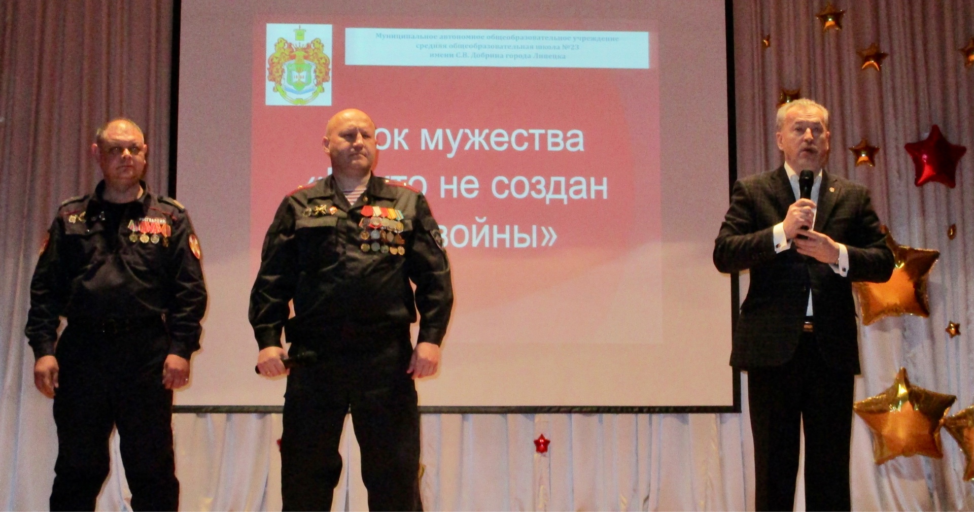 В МАОУ СОШ №23 г.Липецка в рамках этого памятного дня прошёл урок мужества «Никто не создан для войны». На мероприятии присутствовали почётные гости: уполномоченный по правам ребенка в Липецкой области Юрий Таран, руководитель Межрегиональной общественной организации ветеранов спецподразделений, ветеран боевых действий Александр Бакулин и ветеран боевых действий Роман Каширский.