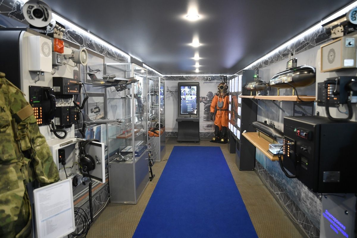 В поезде представлены вагоны «Оружие особого рода», «Юнармия: берем пример с лучших», «Этих дней не смолкнет слава», «Альянс обетованный», «С отвагой в сердце», «Всегда на высоте», «Долг, честь, отвага», «Армия России», а также «Военная служба по контакту – выбор сильных!».