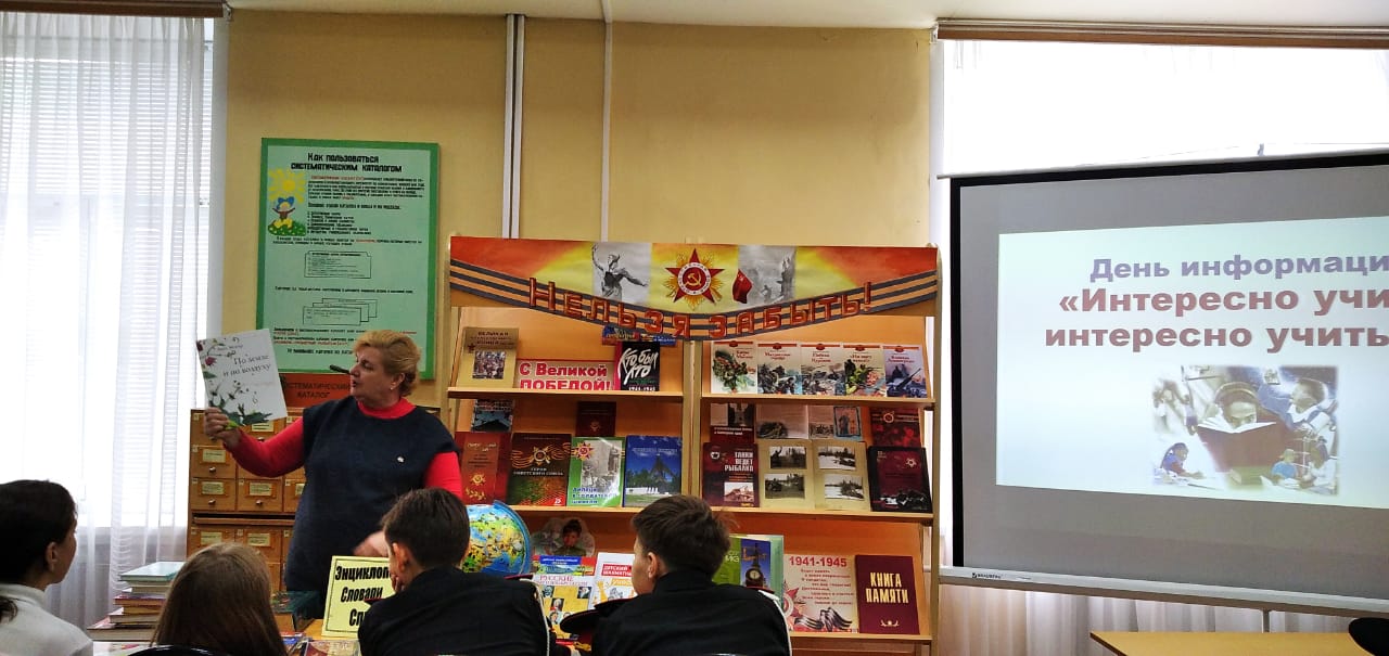 Ребята познакомились с книжной выставкой-просмотром «Путешествие в страну знаний». Юные читатели стали участниками библиографического обзора, познакомились с литературой, которая поможет более подробно изучать школьные предметы. Участники Дня информации из книг и материалов периодической печати узнали, как можно интересно и увлекательно дополнить знания по математике, биологии, физике, истории и другим наукам. Дети младшего возраста стали участниками экскурсии «Страна Читалия приглашает друзей», а ребята-старшеклассники отвечали на вопросы игры-викторины «Полезные книги для умников и умниц» в ходе, которой они знакомились с книжными новинками. Каждый из них выбрал понравившиеся книги для домашнего прочтения.«Книги – это корабли мысли», — сказал древний философ. И мы надеемся, что этот корабль никогда не зайдёт в гавань тишины и уныния, а будет бережно нести свой драгоценный груз от поколения к поколению.