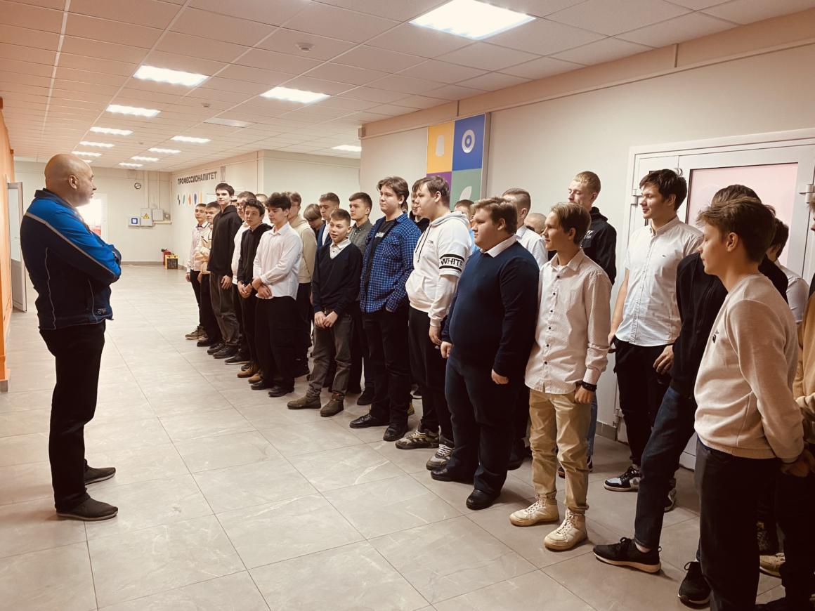 Экскурсию по образовательно-производственному кластеру колледжа и мастер-класс для студентов учебных групп ТМ 23-1 и МТОР 23-2 провели преподаватели спецдисциплин колледжа Платицин А.П. и Миронов А.С.