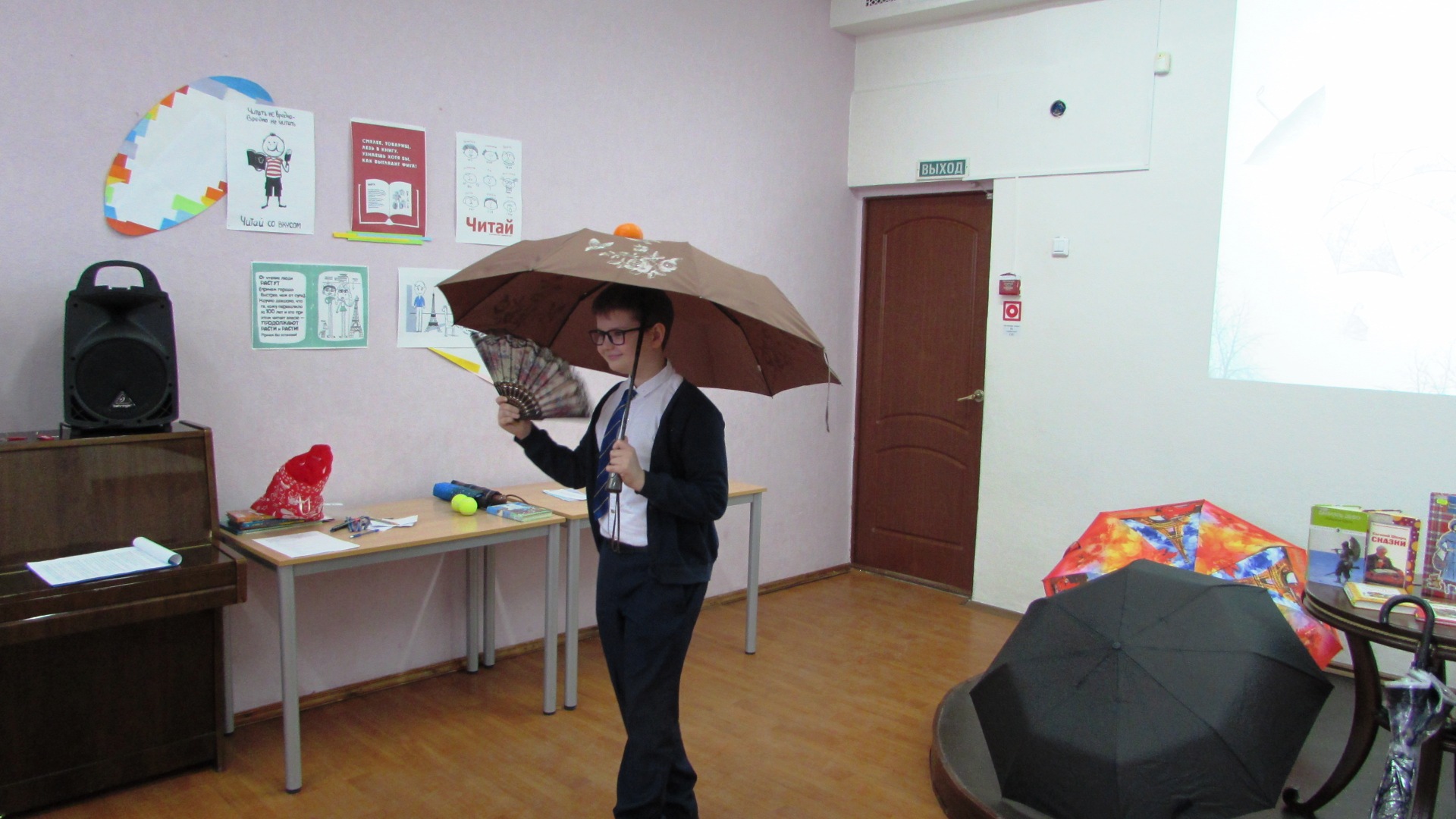 Познавательно-игровой программой учащиеся школы № 61 отметили международный день одного из самых полезных изобретений — зонта. Участники узнали много интересного из истории этого удобного и незаменимого аксессуара, услышали одну из красивейших легенд, посвященных его появлению. А в ходе веселых игр и занимательных викторин, они вспомнили сюжеты художественных произведений и литературных персонажей, которые использовали зонтик — Робинзона Крузо, Оле Лукойе, Хагрида, Любелию Лякошель-Тробинс, и убедились, сколько всего можно сделать с помощью зонта. Даже полетать, как любимая героиня всех детей — Мэри Поппинс. Ребята с удовольствием посмотрели отрывок из фильма и в заключение поучаствовали в книжном аукционе от «Мэри Поппинс», отвечая на вопросы викторины по книге Памелы Трэверс, придумавшей няню-волшебницу.