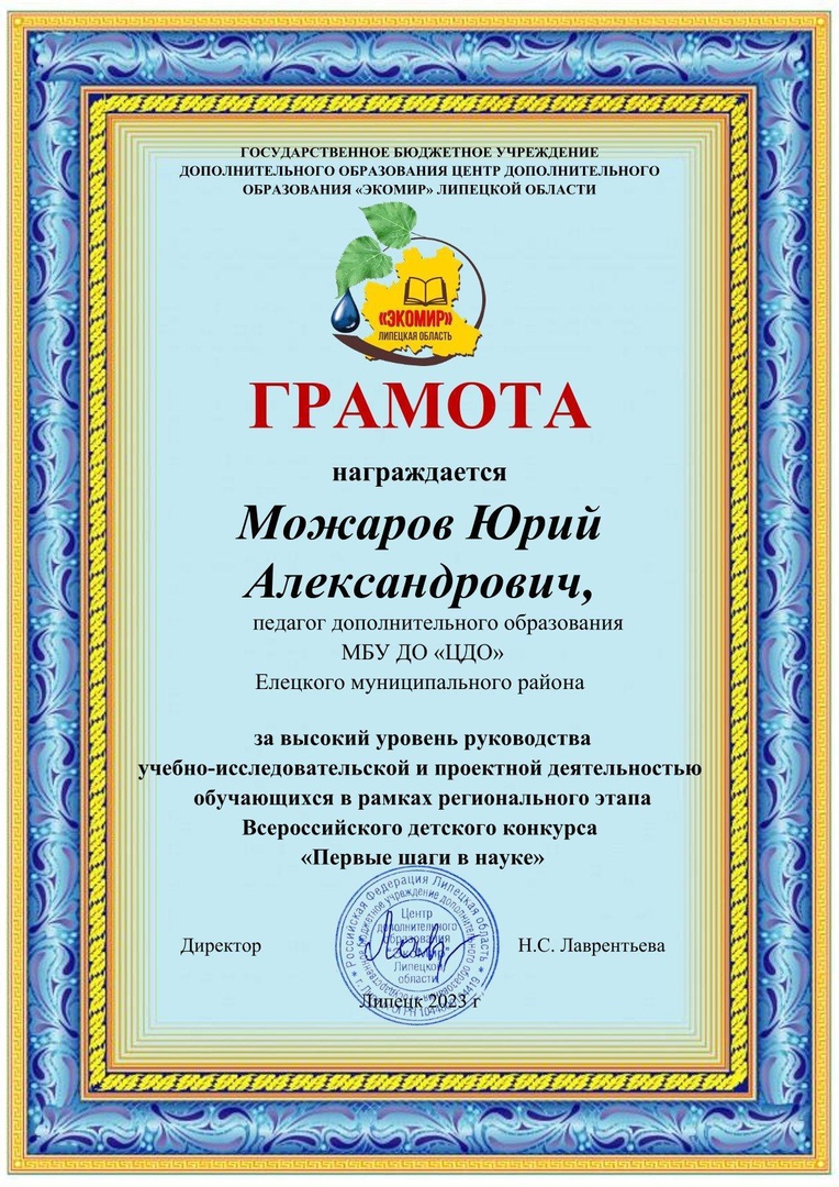 Подведены итоги регионального этапа Всероссийского детского конкурса научно-исследовательских и творческих работ «Первые шаги в науке», целью которого было создание условий для формирования интереса обучающихся младшего и среднего возраста к познавательной, творческой, экспериментально – исследовательской, интеллектуальной деятельности. Победителем (1 место) в номинации «Биология» стал Климов Александр (МБУ ДО «ЦДО», ДО «Таволга», рук. Можаров Ю.А.) Победителем (1 место) в номинации «Экология, безопасность жизнедеятельности» стали Шалунова Мария, Панова Ксения (МБОУ ООШ с. Лавы, рук. Филиппова М.И., Родионова О.В.). Призером (2 место) в данной номинации стала Киселева Ксения (МБОУ ООШ с. Лавы, рук. Невокшонова Е.А.). В номинации «Краеведение» призером (2 место) стала Карташова Ульяна (МБУ ДО «ЦДО», ДО «АстрономиЯ», рук. Гусев А.А.) Поздравляем победителей!
