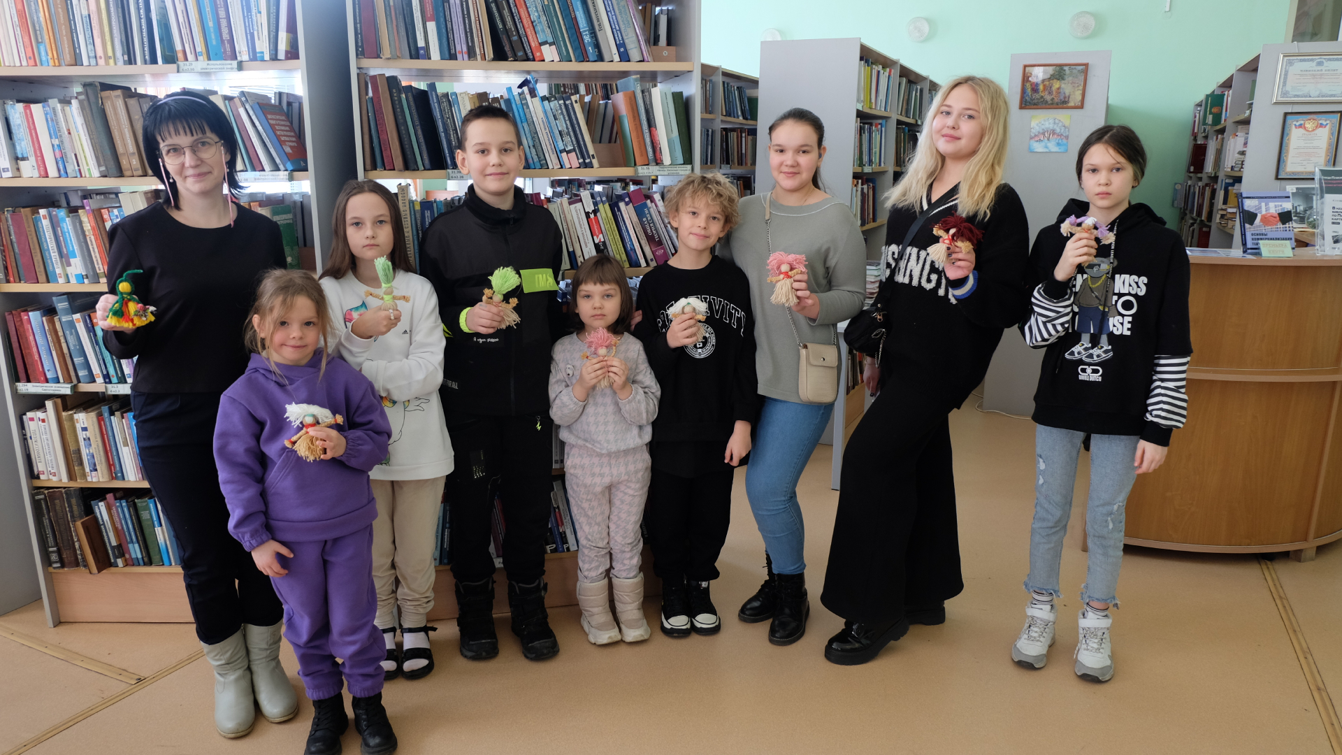 На очередном мастер-классе из цикла «Рукотворная краса» гости нашей библиотеки смастерили озорную куклу-оберег из ниток.