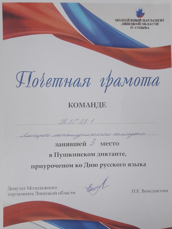 В этот день студенты Липецкого металлургического колледжа начали подготовку к Пушкинскому диктанту-2024. Международная просветительская акция «Пушкинский диктант» организуется ежегодно «Ассоциацией учителей литературы и русского языка».