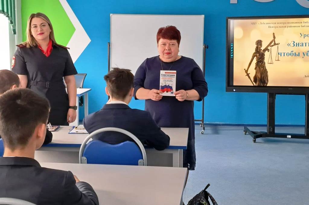 Специалист библиотеки Казанкова Н.Ю. познакомила подростков со статьями Конституции Российской Федерации, которые раскрывают права и обязанности граждан, дала определения понятиям «проступок», «правонарушение», «преступление. На встречу была приглашена инспектор отдела по делам несовершеннолетних ОУУП и ПДН МО МВД России «Лебедянский» лейтенант полиции А.А. Филатова. Она разъяснила, с каких лет наступает уголовная ответственность, уделила большое внимание административным правонарушениям и предусмотренной ответственности за них. На конкретных примерах было рассказано о мерах наказания за кражи, распитие спиртных напитков, употребление наркотических средств. Инспектор отдела по делам несовершеннолетних подчеркнула, что ребята уже сейчас начинают строить свою судьбу и сами решают, нарушать законы или нет. Напомнила школьникам о вреде употребления спиртных напитков и табака, а также объяснила, чем опасны эти пагубные привычки. В завершение мероприятия библиотекарь познакомила с законами, определяющими правила поведения, и вручила буклеты «Новое в законодательстве Липецкой области для подростков». Школьники с удовольствием поучаствовали в правой викторине «Знаю ли я Закон?». Участники урока права пришли к убеждению, что за любые совершенные поступки нужно отвечать, и по-настоящему свободен, может быть только тот человек, который соблюдает и уважает законы государства, в котором он живёт.