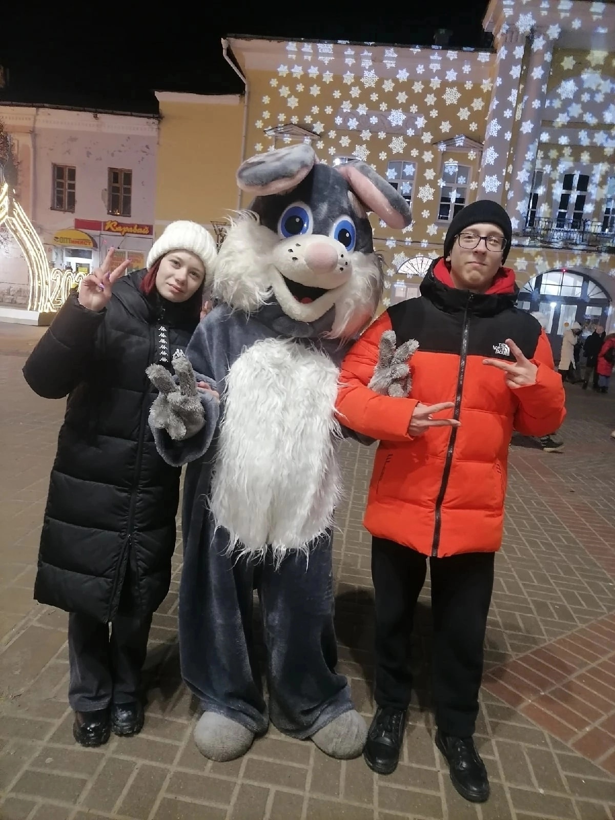 В преддверии Рождества волонтёры ЕМК развлекают ребятишек в качестве ростовых кукол в ходе интерактивно-развлекательной программы для всей семьи на площади Ленина г.