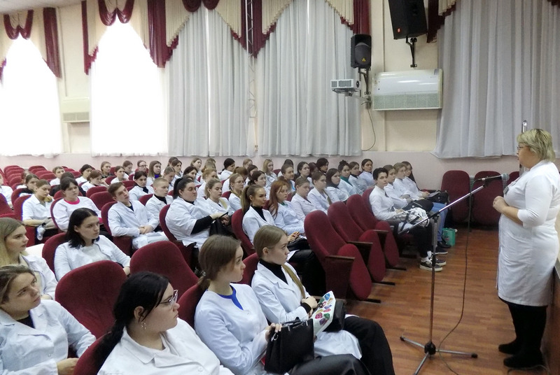 В актовом зале липецкого медицинского колледжа 13 февраля прошла встреча студентов выпускных групп специальности «Сестринское дело» с главой медицинской сестрой областной детской больницы Оксаной Хрипунковой.