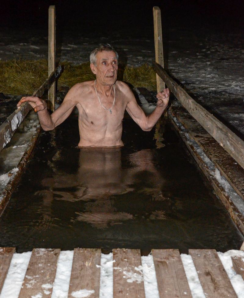 Во время купаний дежурили спасатели, скорая и полиция. Работал пункт, а купающимся и наблюдателям предлагали согреться горячим чаем.