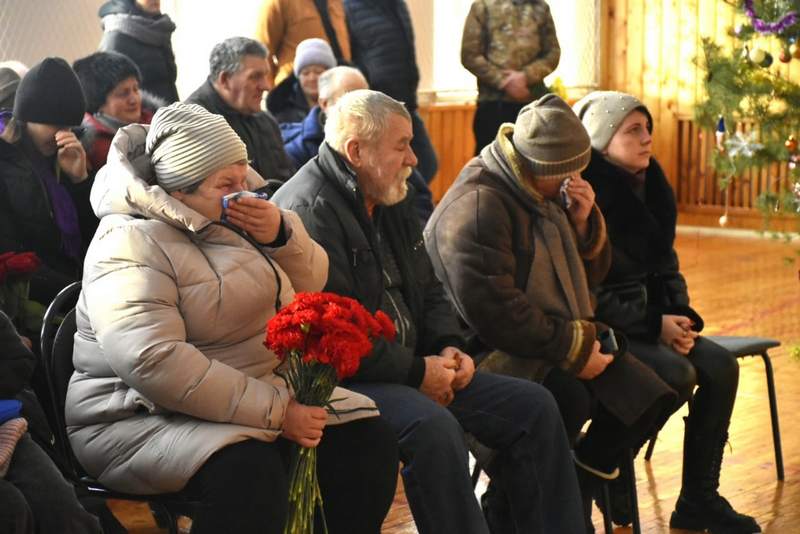 Почтили память героя в актовом зале бывшей Новочеркутинской школы, где сейчас расположен детский сад. На почетных местах – его родители, Нина Алексеевна и Николай Егорович. Рядом с ними жена Оксана, дочь София, сын Сергей, теща Ольга Михайловна. Они приехали на траурную церемонию из Костромы. Пришли на митинг односельчане, друзья, одноклассники.