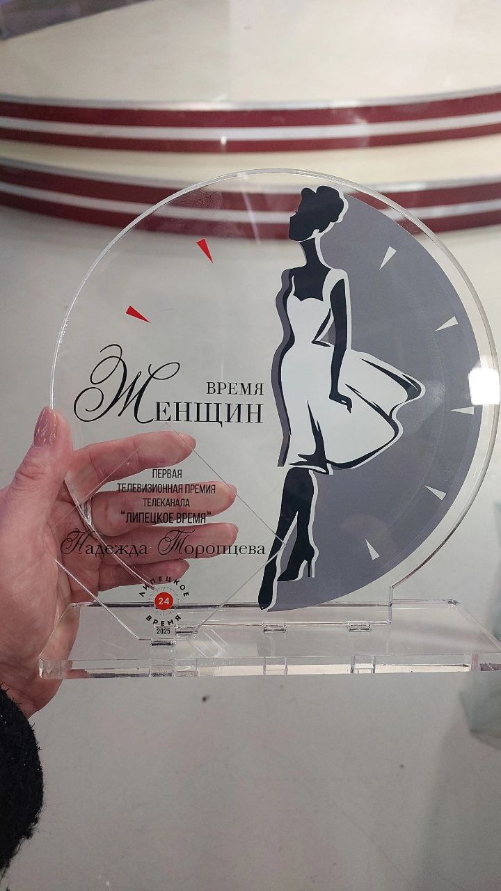 Президент фонда "Вместе делаем добро" Надежда Торопцева накануне Международного женского дня получила премию "Время женщин" от телеканала "Липецкое время".