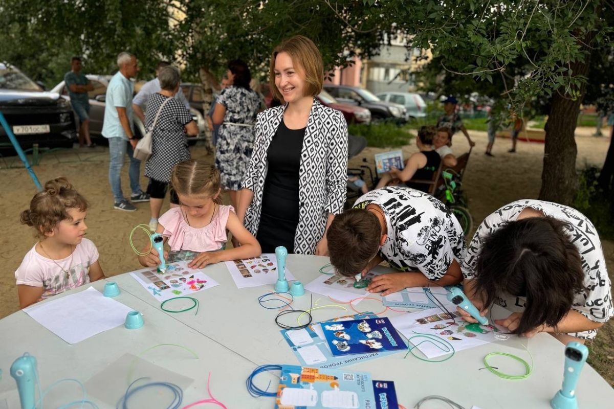 Во дворе домов 63 и 63а по улице Крылова департамент развития территории организовал встречу с местными жителями, а для их детей - творческие развлечения.