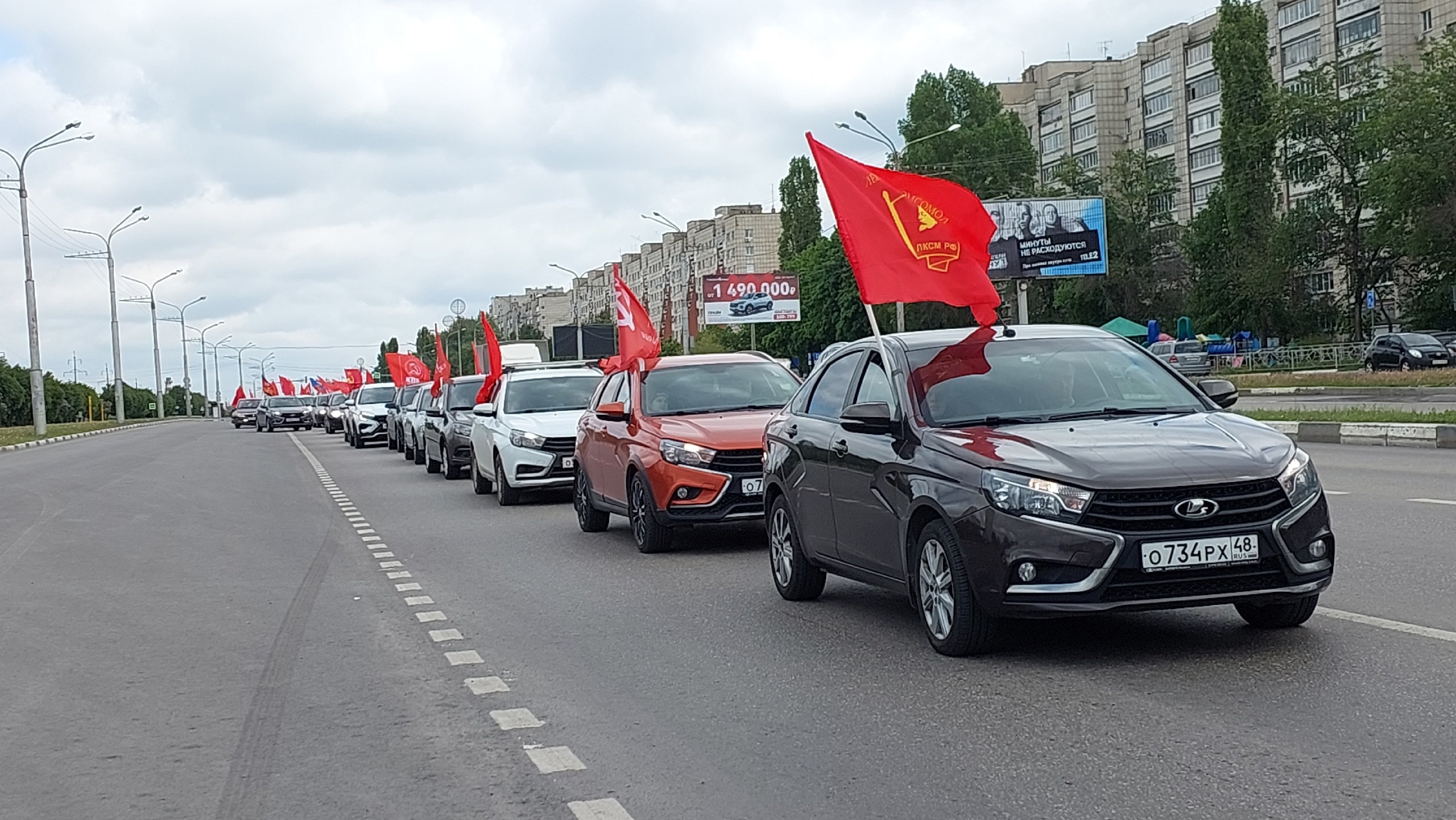 В автоколонне проехало около 20 легковых автомобилей, которые почти три часа курсировали по основным улицам областного центра. Машины были украшены копией Знамени Победы, красными флагами СССР, КПРФ, ЛКСМ.