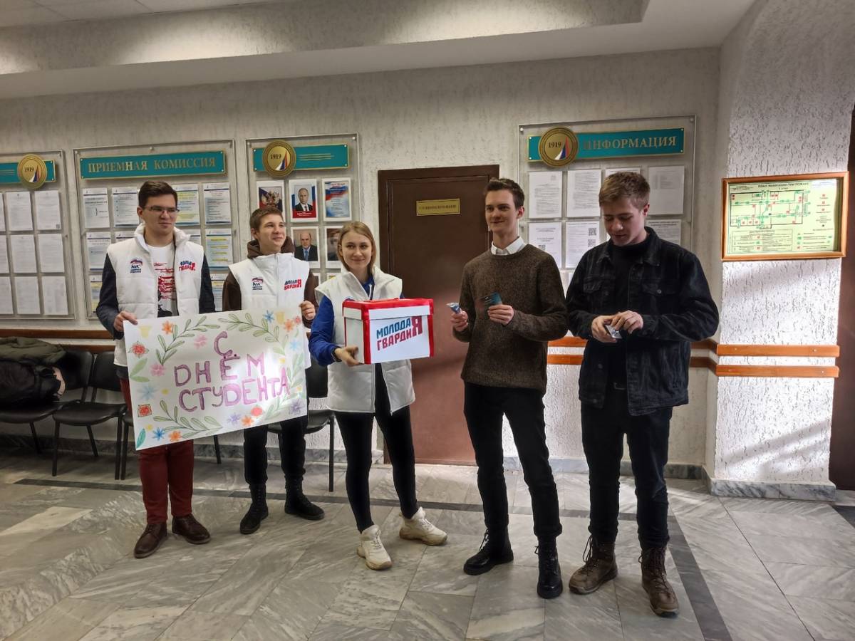 Сегодня липецкие молодогвардейцы организовали пикеты и поздравили с праздником студентов Липецкого филиала РАНХиГС и Финансового университета.