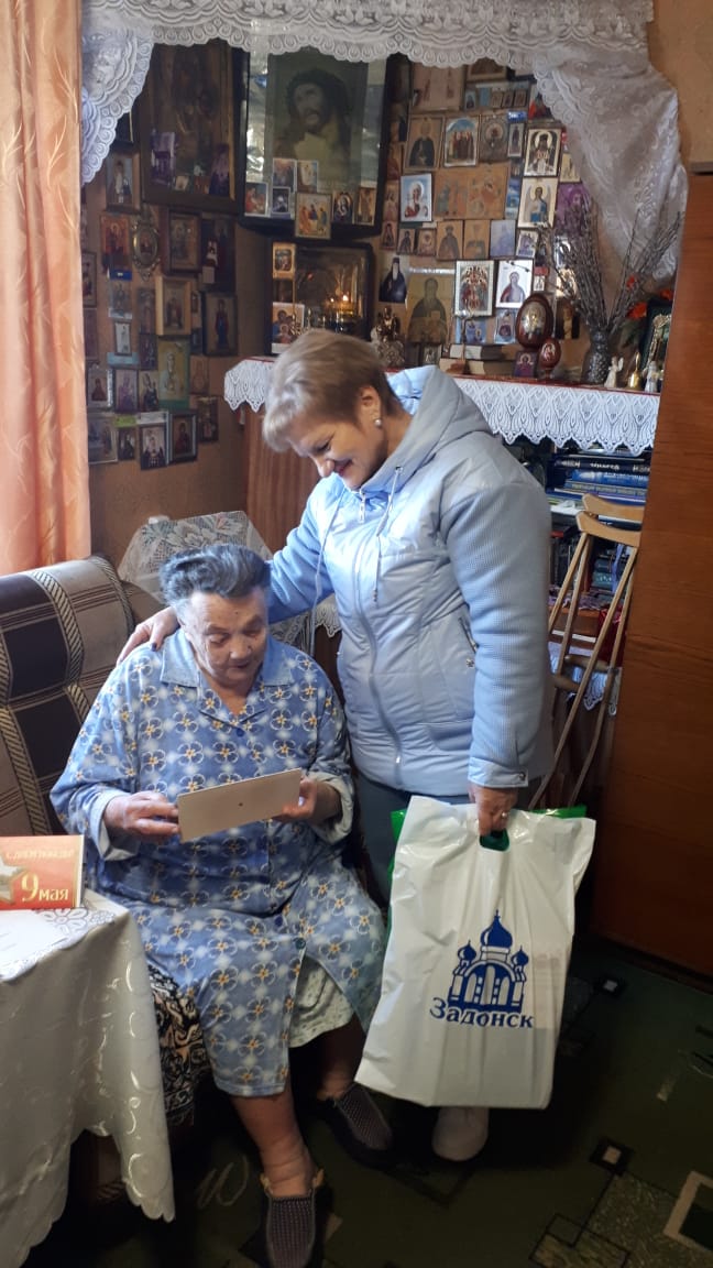 Председатель Местного отделения Задонска Елена Владимировна Семенихина поздравила ветеранов с праздником Победы.