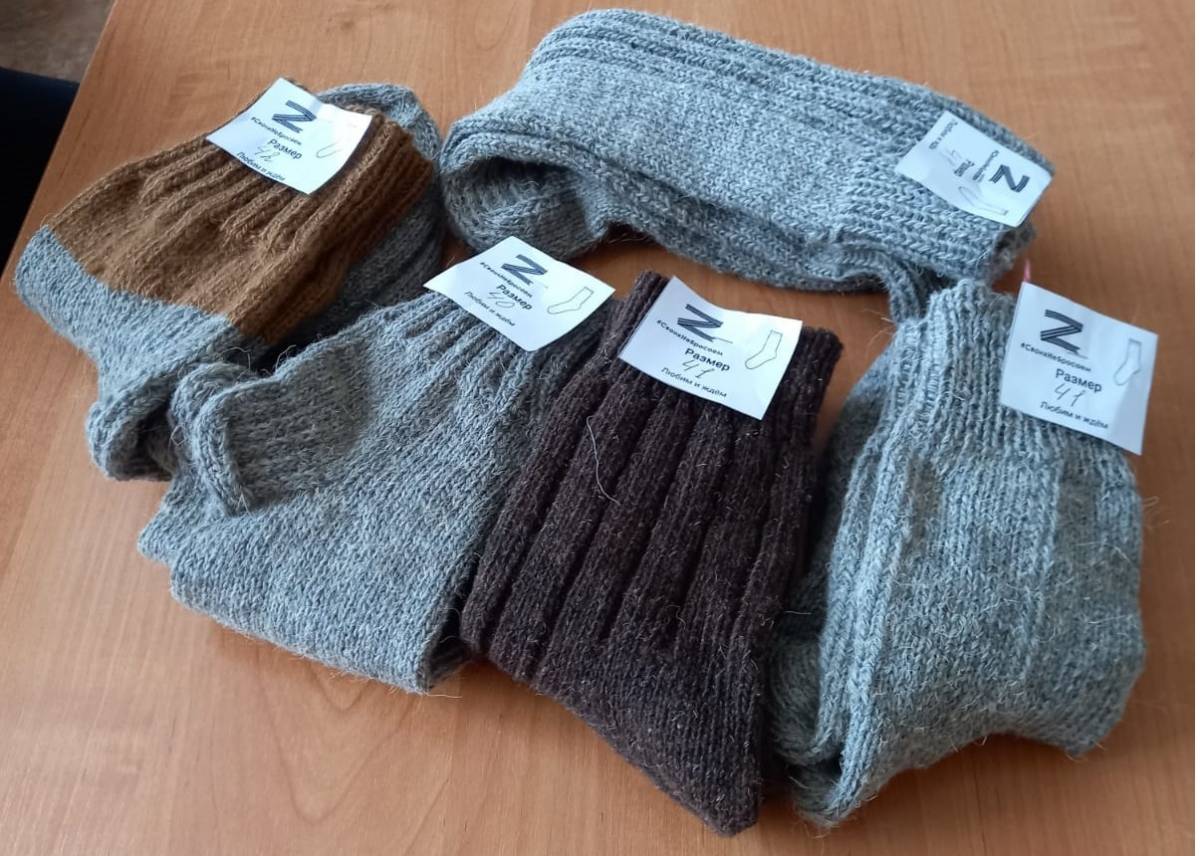 В Ельце «серебряные» волонтеры и неравнодушные жители объединились в группу мастеров по вязанию - «Вязальный батальон». С октября 2022 года и по настоящее время рукодельницы с любовью и трепетом вяжут и теплые носки (разных размеров) и варежки. Рукоделием в Ельце занимаются не только представительницы прекрасного пола, на предложение связать теплые вещи откликнулся и мужчина, который связал не только теплые носки, но и трехпалые варежки, специально предназначенные для возможности ведения стрельбы.