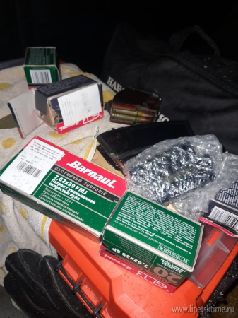 В ходе досмотра авто было обнаружено оружие с насадкой, которая похожа на «прибор для бесшумный стрельбы», более 50 штук патронов, оптический прицел, фонари, ножи и целлофановые пакеты.