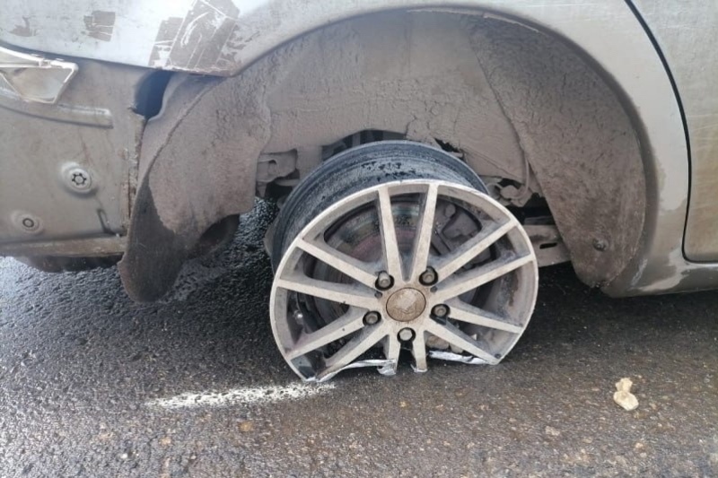 Однако в пути липчанин повредил правое заднее колесо у автомобиля, после чего его заклинило. Автомобиль потерял резину, сточил об асфальт часть диска колеса и, наконец, встал.