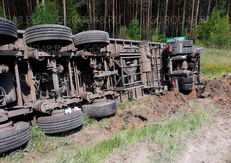 В Грязинском районе «МАЗ» перевернулся после того, как на его полосу со встречной выскочила «Рено»