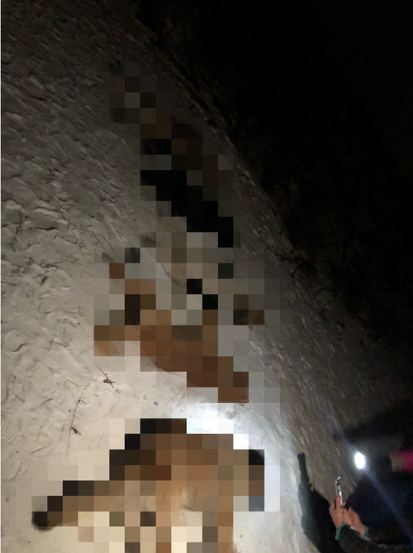 «На одной из собак был ошейник с карабином. Рядом следы волочения и следы от автомобиля с прицепом», — написали волонтеры.