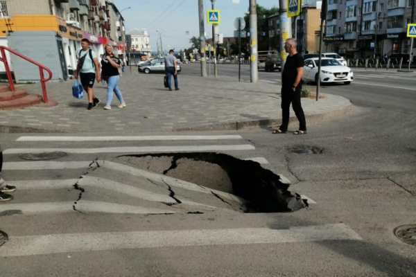 В центре Липецка провалился асфальт