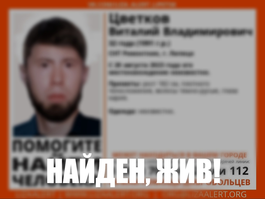 О местонахождении Виталия Цветкова не было известно с 20 августа