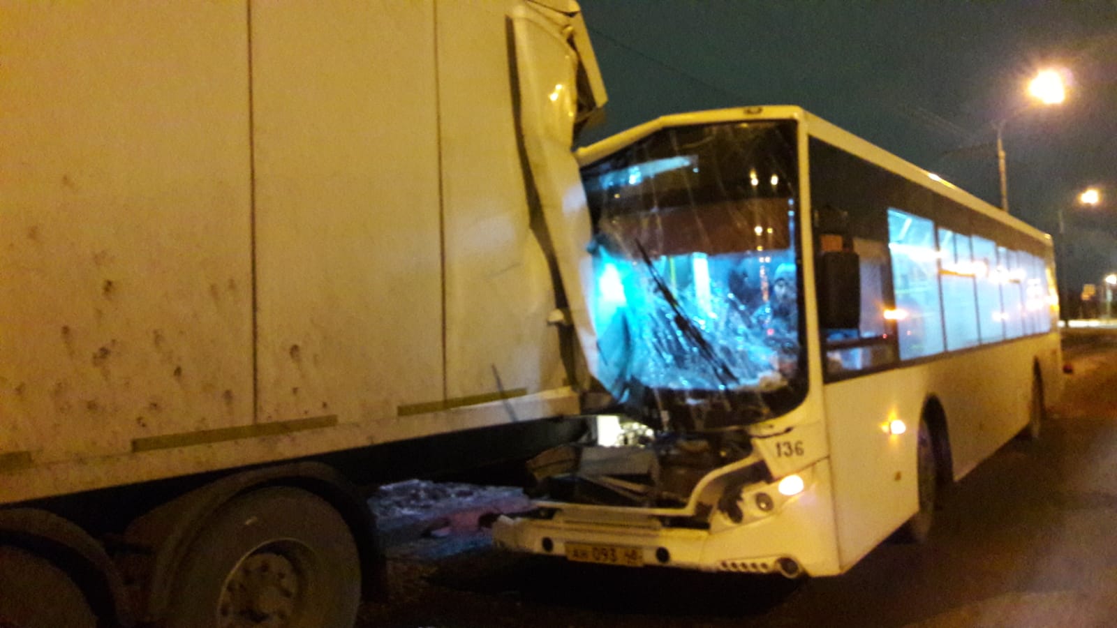 В Липецке ночью минувшей пятницы, 17 февраля, в районе дома №91 на улице Московской произошла авария с участием автобуса и грузовика.