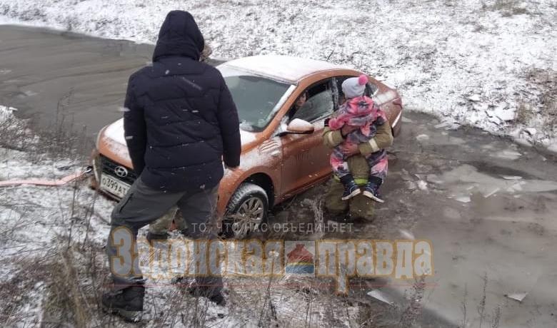 Задонские спасатели достали из кювета машину с детьми