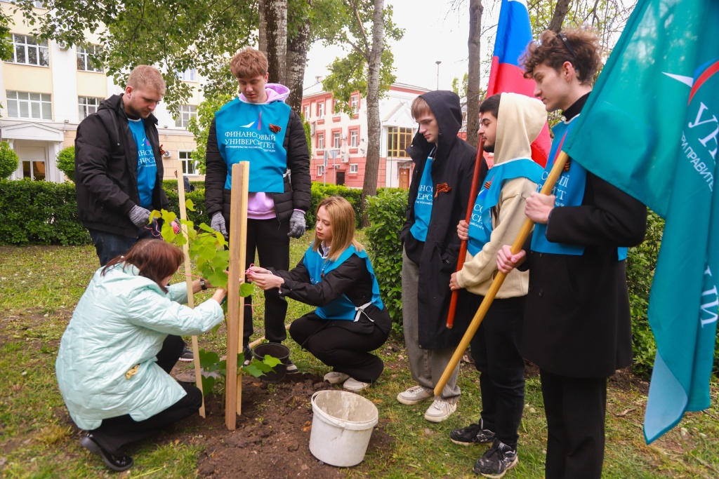 Студенты Финансового университета вместе с депутатом Олегом Косолаповым посадили липовую аллею в память ветеранов Великой Отечественной войны.