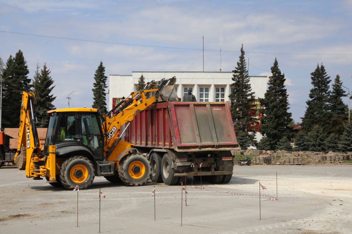Благоустройство площади Октябрьской революции в Чаплыгине началось с демонтажа старых конструкций.