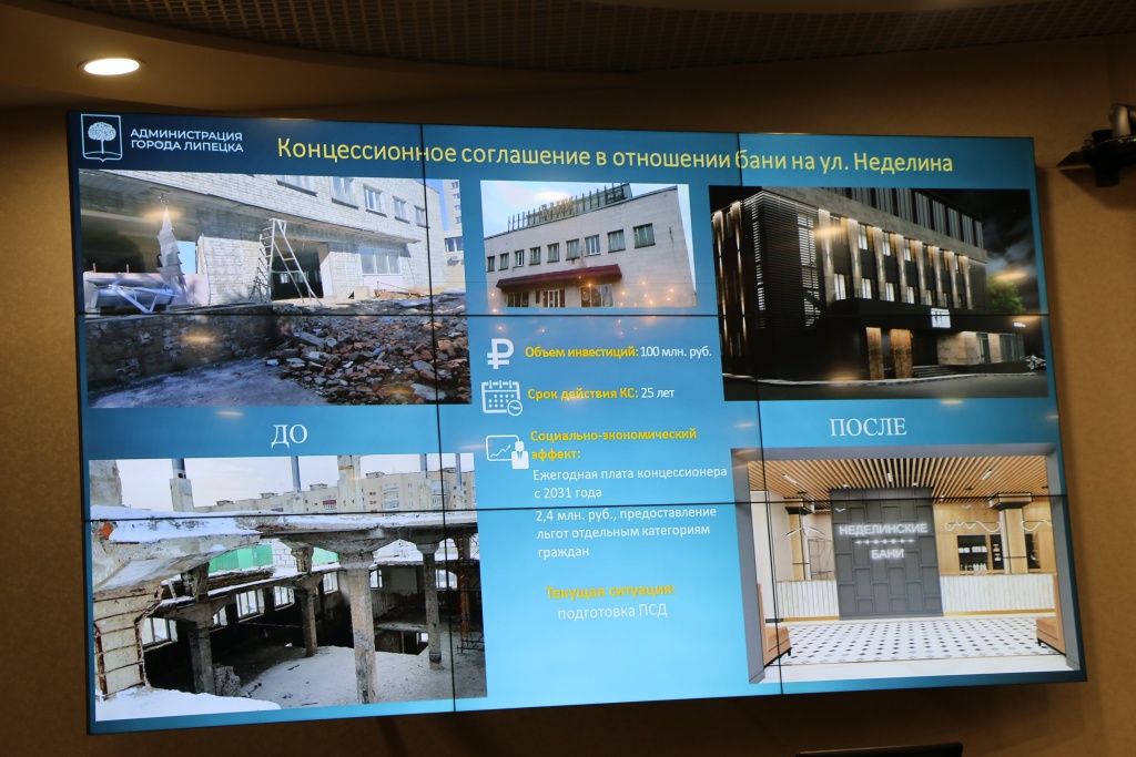 Баню передали концессионеру в сентябре 2021 года на 25 лет. К февралю 2025 года должна закончиться реконструкция объекта. По концессионному соглашению предприниматель должен вложить не менее 100 млн рублей. Предусмотрена концессионная плата ежемесячно 200 тыс. рублей, начиная с 2031 года.