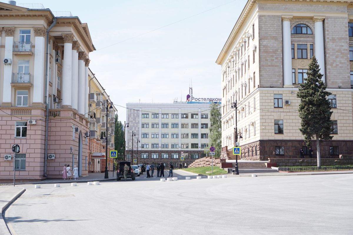 Тем временем к зданию правительства региона, которое находится здесь же, стянулись люди в спецформе и с оружием. Они расположились по периметру здания и у главного входа.