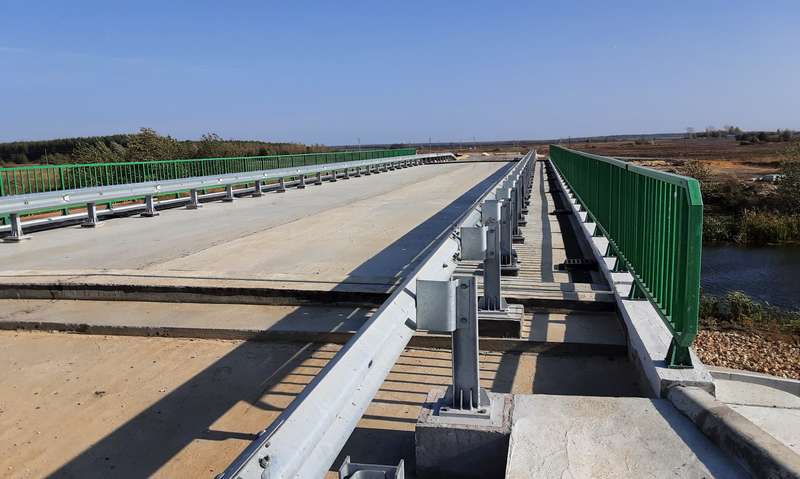 У нового, прочного моста три пролета по 15 м. Для опор специалисты смонтировали 16 буронабивных свай, которые уходят на глубину до 13 м. На сегодня готовы все несущие конструкции, укреплены конусы, построены подъезды к мосту, смонтирована экологичная система водосбора с фильтрацией сточных вод, обустроены метровые пешеходные зоны. В настоящее время подрядчик готовится укладывать на объекте асфальтобетонное покрытие. Пустить там движение планируется в этом году.Мостостроителям предстоит также демонтировать остатки старой дороги. Все работы обойдутся в 113 млн рублей.