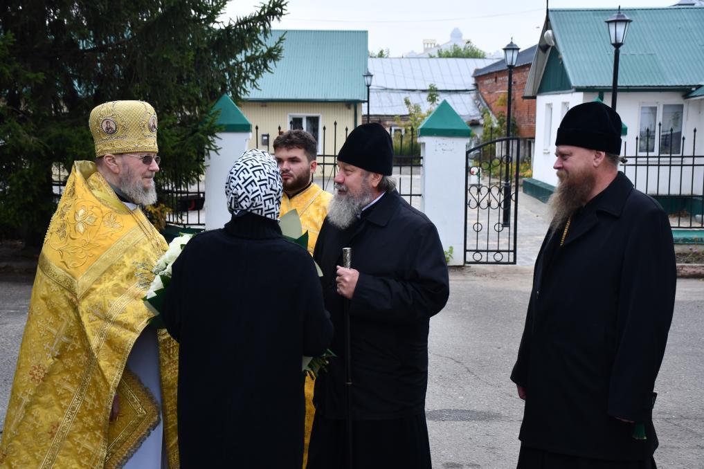 В память о посещении собора владыка Максим преподнес владыке Роману икону Святой Троицы, а владыка Роман – копию чудотворной Казанской-Коробейниковской иконы Божией Матери.
