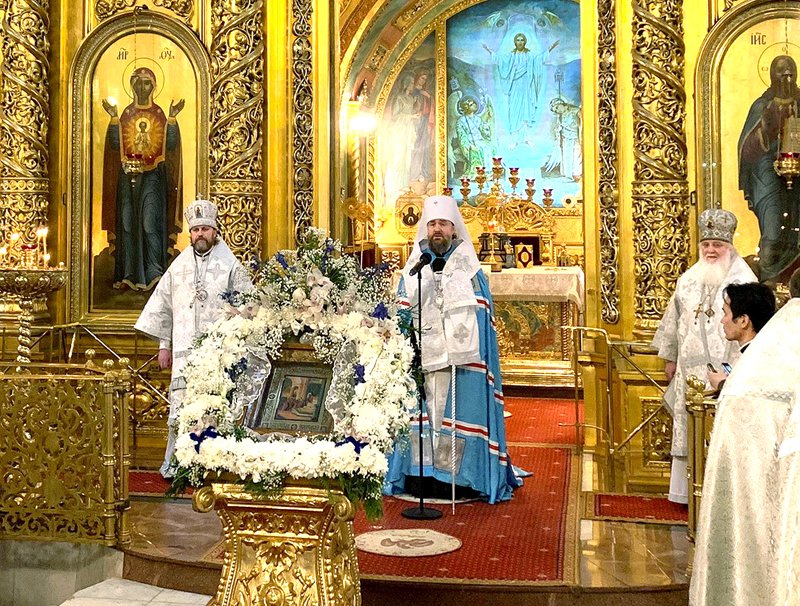 За Богослужением молились игумении: Иулиания (Каледа), настоятельница Зачатьевского ставропигиального женского монастыря г. Москвы; Викторина (Перминова), настоятельница Богородице-Рождественского женского монастыря г. Москвы; Екатерина (Чайникова), настоятельница Крестовоздвиженского Иерусалимского монастыря, с сестрами.