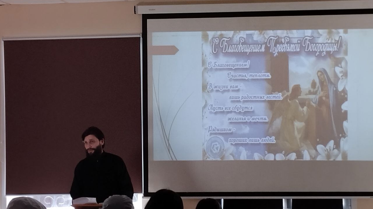 Студенты познакомились с историей праздника Благовещения, занимающего важное место не только в церковном календаре, но и в сердцах всех православных христиан, с земной жизнью Пресвятой Богородицы, с народными традициями и приметами этого праздника.