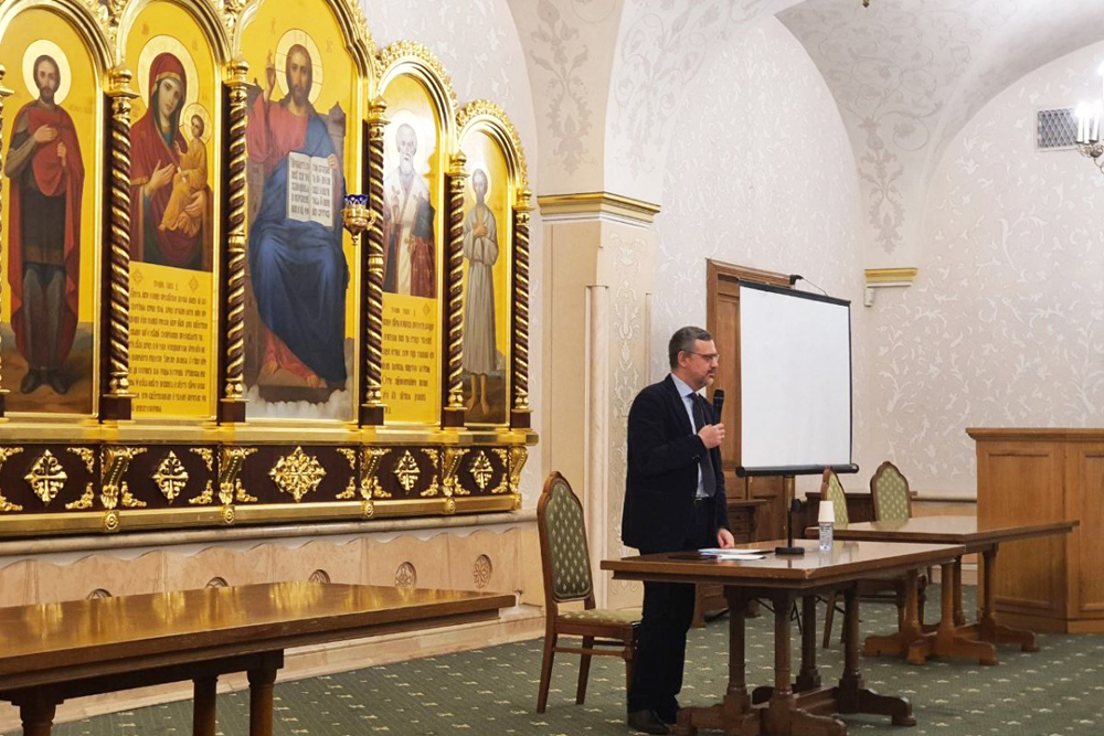 В начале своего выступления Владимир Романович отметил, что в условиях масштабной трансформации общества особенно важной и востребованной становится творческая инициатива служителей Церкви по ряду направлений церковно-государственного и церковно-общественного взаимодействия.