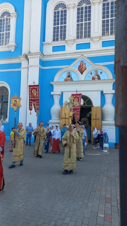 Начав движение от Тихвинского собора, под колокольный звон и пение верующих, крестный ход прошел по центральным улицам через святыни г. Данкова. Под омофором Божией Матери молящиеся прошли более 12 км.