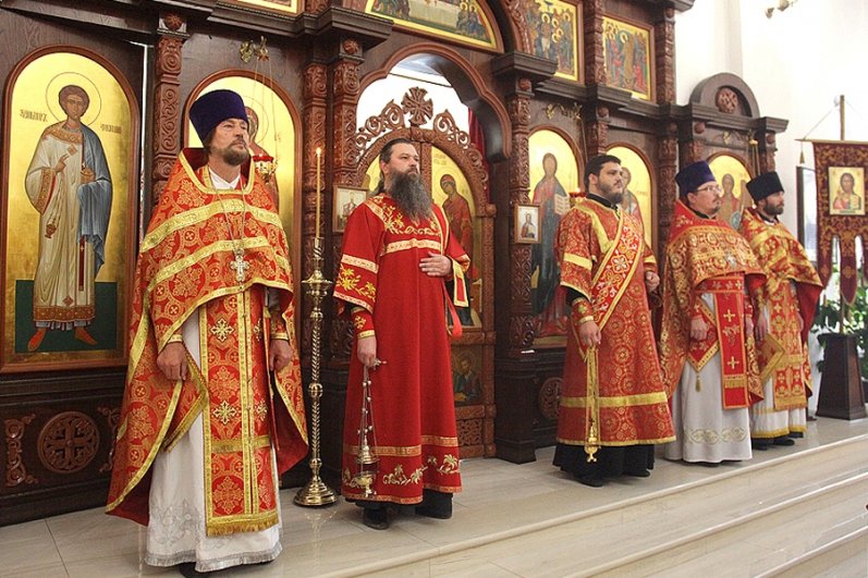 Его Высокопреосвященству сослужили: протоиерей Виталий Диесперов, благочинный храмов 1-го Липецкого церковного округа; протоиерей Геннадий Рязанцев, настоятель храма; протоиерей Алексий Диагенов, клирик храма; диаконы: Андрей Кантарюк, клирик кафедрального собора Рождества Христова г. Липецка; Сергий Кораблин, клирик храма сщмч. Уара г. Липецка.