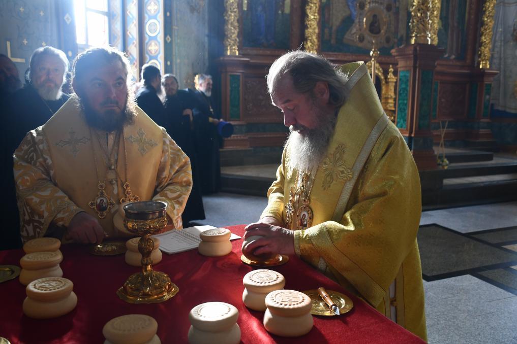 За богослужением молились представители администрации города, игумении епархиальных монастырей, прихожане и многочисленные паломники.