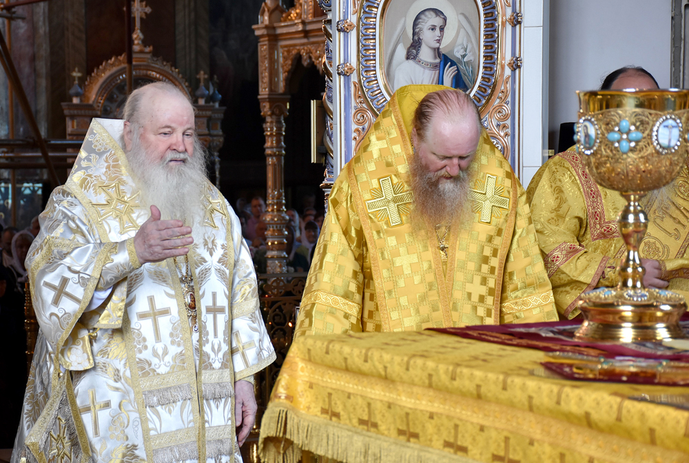 Архипастырям сослужили: архимандрит Трифон (Голубых), благочинный обители; игумен Савватий (Корнеев); иеромонахи: Гавриил (Мельников), Даниил (Ведмедь), Анастасий (Беляков), Савва (Силантьев); иеродиаконы: Паисий (Боев), Антоний (Корнеев), Лаврентий (Подколзин), насельники обители.