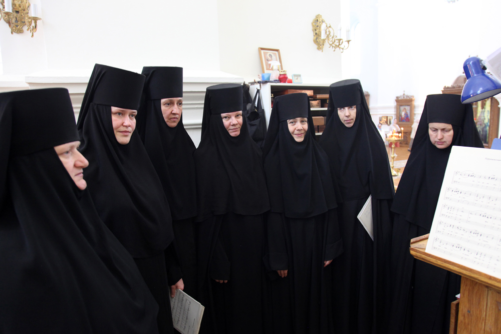Пели два соединенных сестринских хора Свято-Тихоновского Преображенского и Богородице-Тихоновского женских монастырей под управлением монахинь Марии (Беловой) и Василисы (Алябьевой).