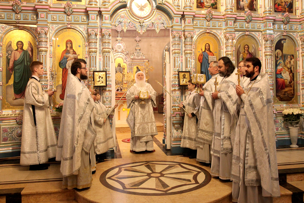 Его Высокопреосвященству сослужили протоиереи: Василий Бильчук, настоятель собора, Владимир Максимчук, ключарь собора, Алексий Носач; иереи: Сергий Гришанов, Виктор Архипкин; диаконы Андрей Кантарюк и Олег Мальцев, клирики собора.