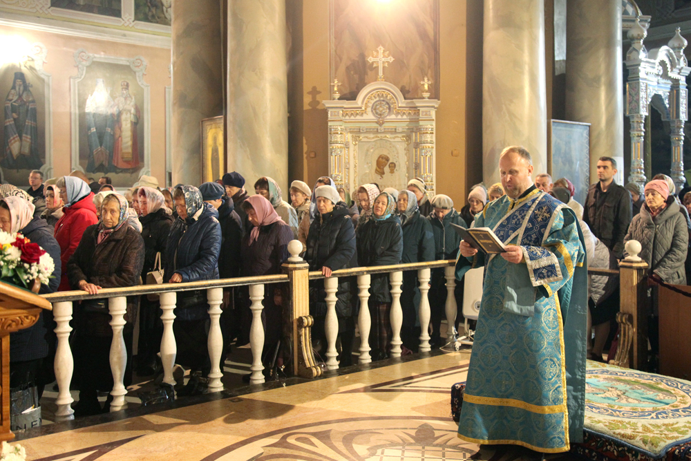 Его Высокопреосвященству сослужили протоиереи: Василий Бильчук, настоятель собора, Алексий Носач; иереи: Сергий Гришанов, Виктор Архипкин, Александр Алешин; диаконы: Андрей Кантарюк и Олег Мальцев, клирики собора.