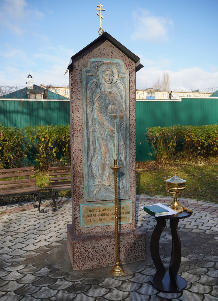 Возле храма-часовни в честь Святого равноапостольного Великого князя Владимира, расположенной на территории УМВД России по Липецкой области, на улице Желябова, установлена стела, посвященная сыщикам.Во время торжественного открытия, начальник УМВД России по Липецкой области генерал-майор полиции Дмитрий Петров вручил благодарственные письма скульпторам Кривопускову Геннадию Васильевичу, Галиченко Оксане Анатольевне и Григорьеву Сергею Николаевичу за создание и установку памятной стелы и поблагодарил ветеранов оперативных служб за значительный вклад в сохранение и приумножение традиций оперативных подразделений, воспитание молодого поколения.