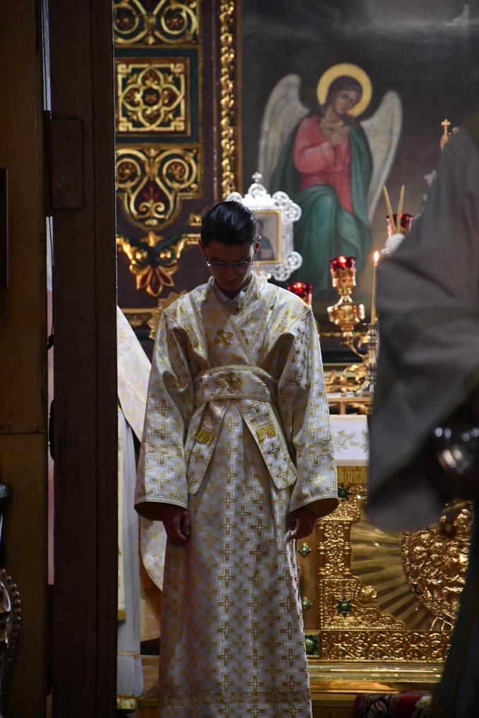Его Преосвященству сослужили благочинный собора иеромонах Иеремия (Ламонов) и иерей Илия Пешков.